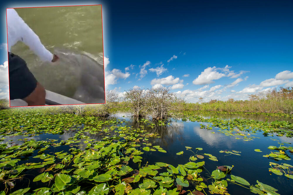 25.06.2023. | 18:39Velika ajkula ščepala je za ruku jednog posjetioca nacionalnog parka Everglejds na Floridi. Na kratkom snimku vidi se mladić koji se nagnuo preko ribarskog čamca sa namjerom da opere ruke, međutim, go…