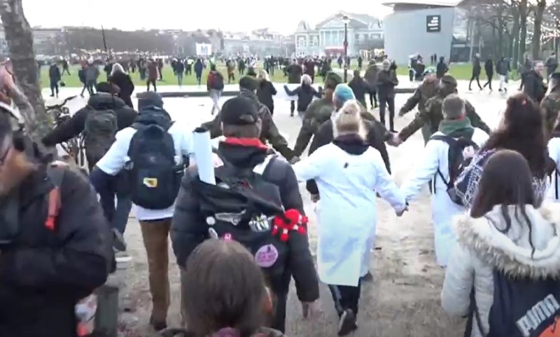 16.01.2022. | 16:33Hiljade ljudi učestvuju danas u demonstracijama na ulicama Amsterdama protiv Vladinih mjera za suzbijanje kovida 19 i kampanje vakcinacije, u vrijeme kada je broj zaraženih dostigao novi rekord.