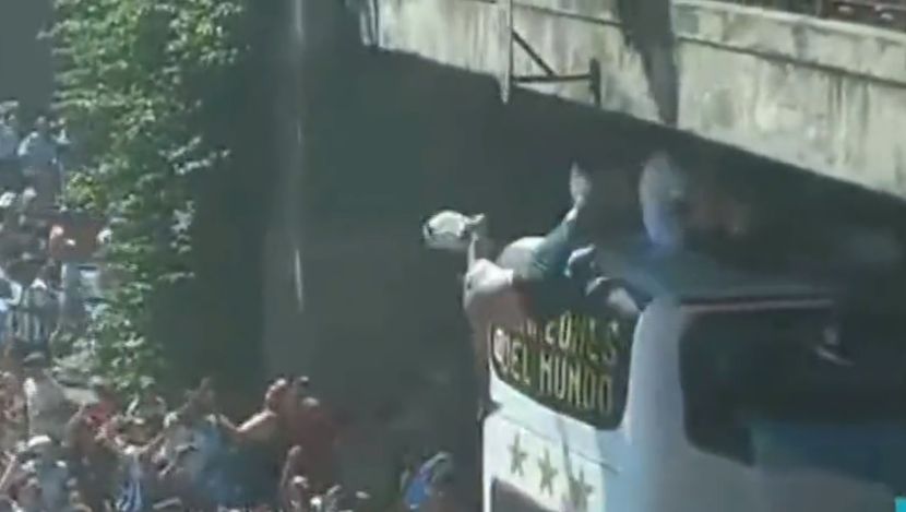 Zastrašujuće: Pokušao da skoči sa mosta na autobus sa Mesijem i društvom pa pao u masu VIDEO