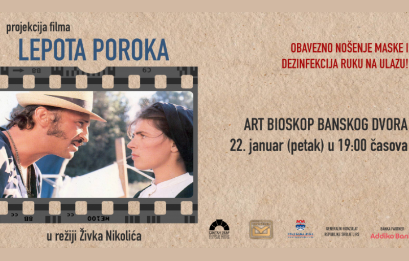 21.01.2021. | 09:53U petak, 22. januara (petak) od 19 časova u Art bioskopu Banskog dvora, biće održana projekcija filma “Lepota poroka”, koji je snimljen 1986. godine u režiji Živka Nikolića, koji je napisao i scenario…