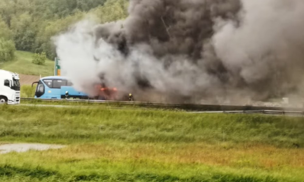 Autobus iz BiH se zapalio na auto-putu u Hrvatskoj: Reagovali vatrogasci, spaseni svi putnici VIDEO
