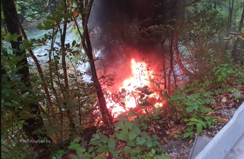 Automobil sletio s puta i zapalio se, tri osobe povrijeđene
