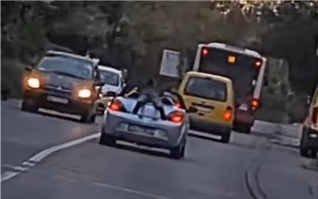 Bahata vožnja ostavile mnoge u šoku: Zakačio se za kabrioleta i visio VIDEO