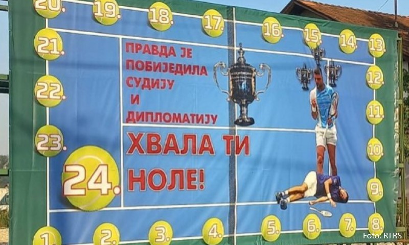 11.09.2023. | 08:19U banjalučkom naselju Vrbanja osvanuo je bilbord čestitke Novaku Đokoviću za osvajanje 24. grend-slem titule, koju je najbolji teniser Srbije osvojio na Јu-Es openu, savladavši ruskog tenisera Danila …