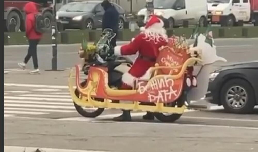 23.12.2021. | 16:14U Novom Beogradu danas je zabilježena nesvakidašnja scena – Božić Bata u “sankama” stoji na semaforu!