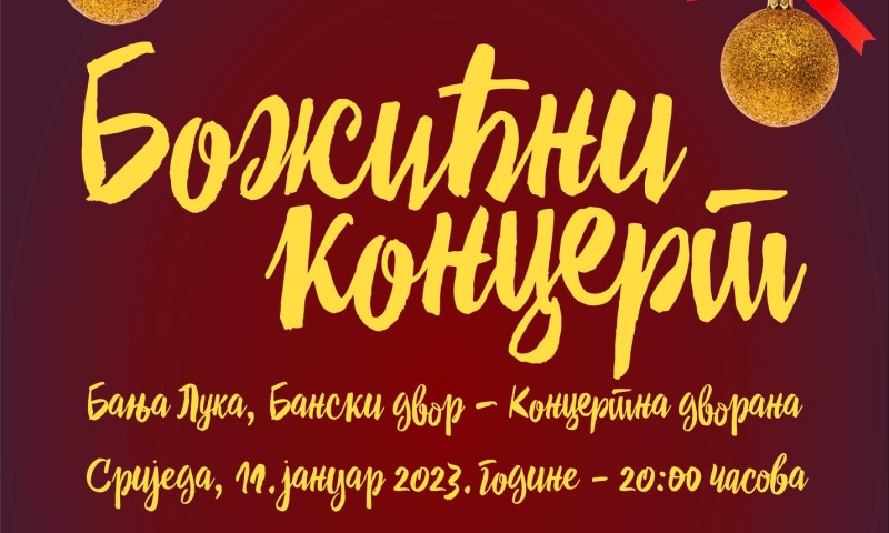10.01.2023. | 14:55Grad Banja Luka, Srpska pravoslavna Eparhija banjalučka, Saborni hram i Srpsko pjevačko društvo “Jedinstvo” Banja Luka vraćaju tradiciju održavanja Božićnog koncerta. Tako će u srijedu, 11. januara, u…
