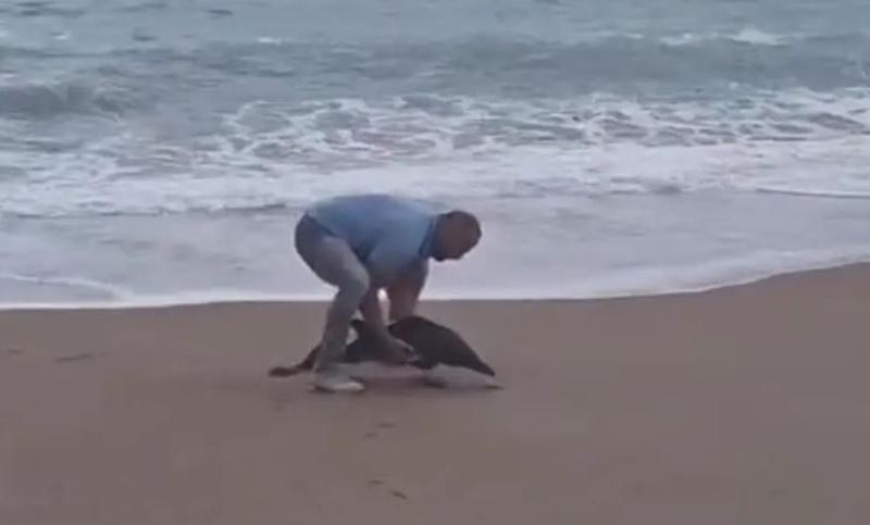 Nesvakidašnji prizor! More izbacilo mladunče delfina na plažu Jaz, spasio ga muškarac