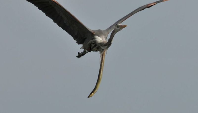 Nema predaje: Ptica je progutala jegulju, a ona je uzvratila udarac u vazduhu VIDEO