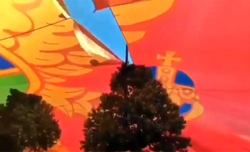 Performans pošao po zlu: Pocijepala se najveća zastava crnogorskih patriota VIDEO