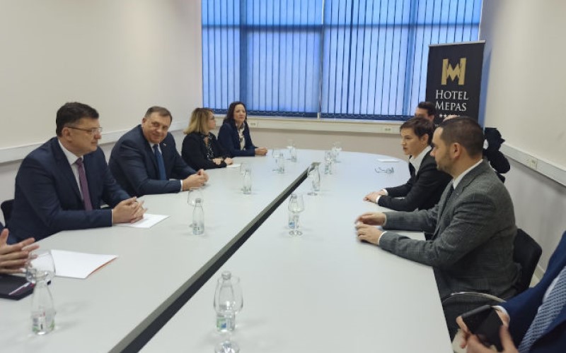 05.04.2022. | 09:41Srpski član Predsjedništva BiH Milorad Dodik i predsjedavajući Savjeta ministara Zoran Tegeltija sastali su se danas u Mostaru sa premijerom Srbije Anom Brnabić uoči otvaranja Sajma privrede u ovom gr…