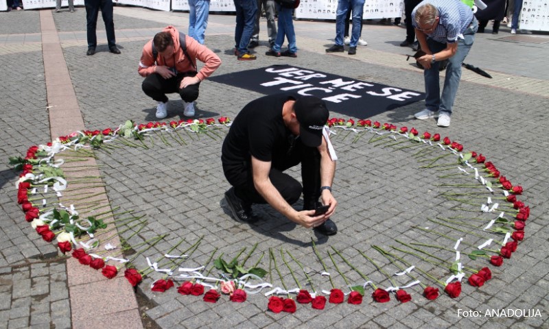 Nekoliko stotina građana na trgu u Prijedoru prisustvovali su skupu “Dan bijelih traka” na kojem su položene ruže u pomen 102 ubijene djece, nakon čega su cvijeće odnijeli u park gdje bi t…