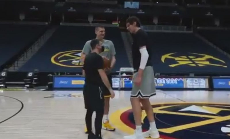 14.03.2021. | 14:06Srpski košarkaši Nikola Jokić i Boban Marjanović režirali su smiješnu scenu pred NBA meč.