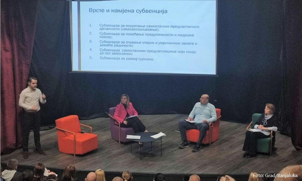 18.04.2023. | 15:49U Domu omladine danas je održan Info dan o Programu dodjele subvencija poslovnim subjektima za 2023. godinu. Veliko interesovanje je iskazano za ovogodišnji Program podsticaja za svih pet linija, što …