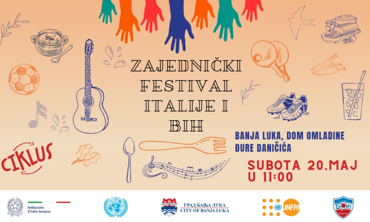 18.05.2023. | 17:53U okviru projekta „Moving us closer“ u subotu 20. maja sa početkom u 11.00 časova, u prostorijama Doma omladine biće održan „Zajednički festival Italije i BiH“. Naime, u organizaciji Grada Banje Luk…