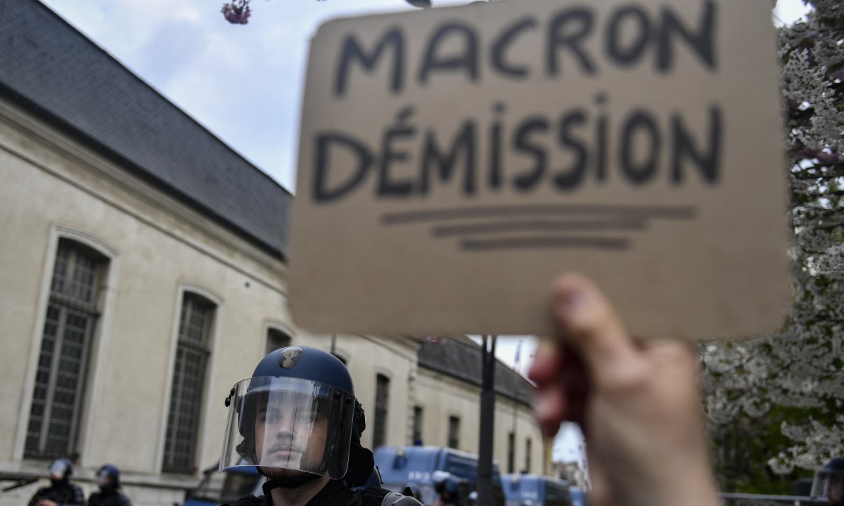 19.04.2023. | 17:28Francuski predsjednik Emanuel Makron pojavio se danas prvi put u javnosti od kako je potpisao sporni zakon o reformi penzijskog sistema i demonstranti su ga dočekali pogrdnim povicima i pozivima da po…