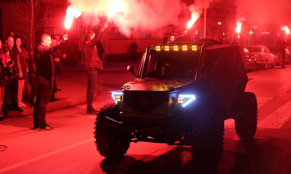15.02.2022. | 20:34Kroz špalir od baklji, glavnom fočanskom Ulicom kralja Petra večeras je Radivoje Radović provozao svoje ručno napravljeno vozilo do Gradskog trga, gdje ga je dočekao veliki broj oduševljenih sugrađana…