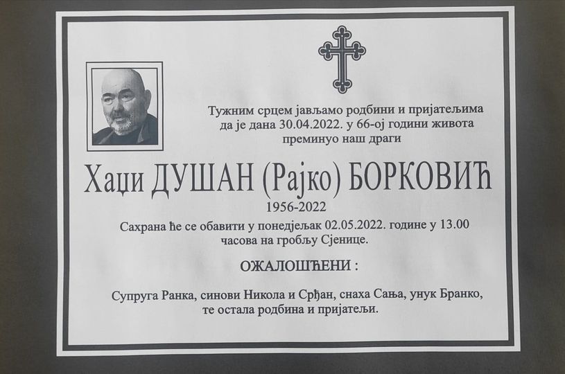 30.04.2022. | 19:36Dugogodišnji fotoreporter “Glasa Srpske“ i humanitarac Hadži Dušan Borković preminuo je danas u 66. godini u Banjaluci.