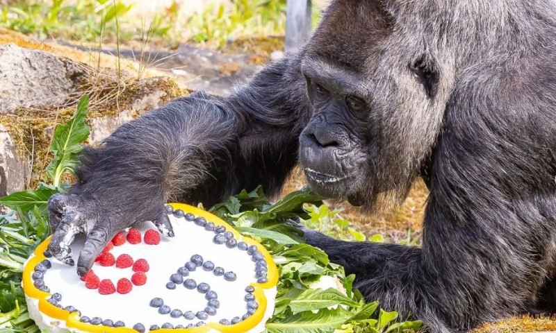 Uživala u torti: Najstarija gorila na svijetu proslavila 65 rođendan VIDEO