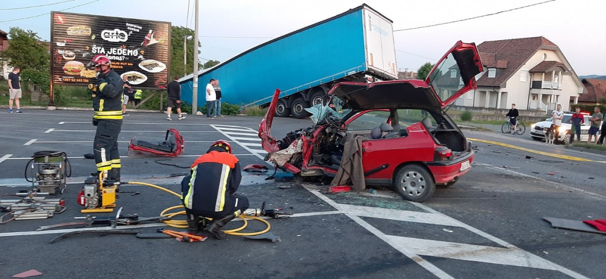 Težak sudar kamiona i automobila: Vozača iz smrskanog vozila izvlačili vatrogasci