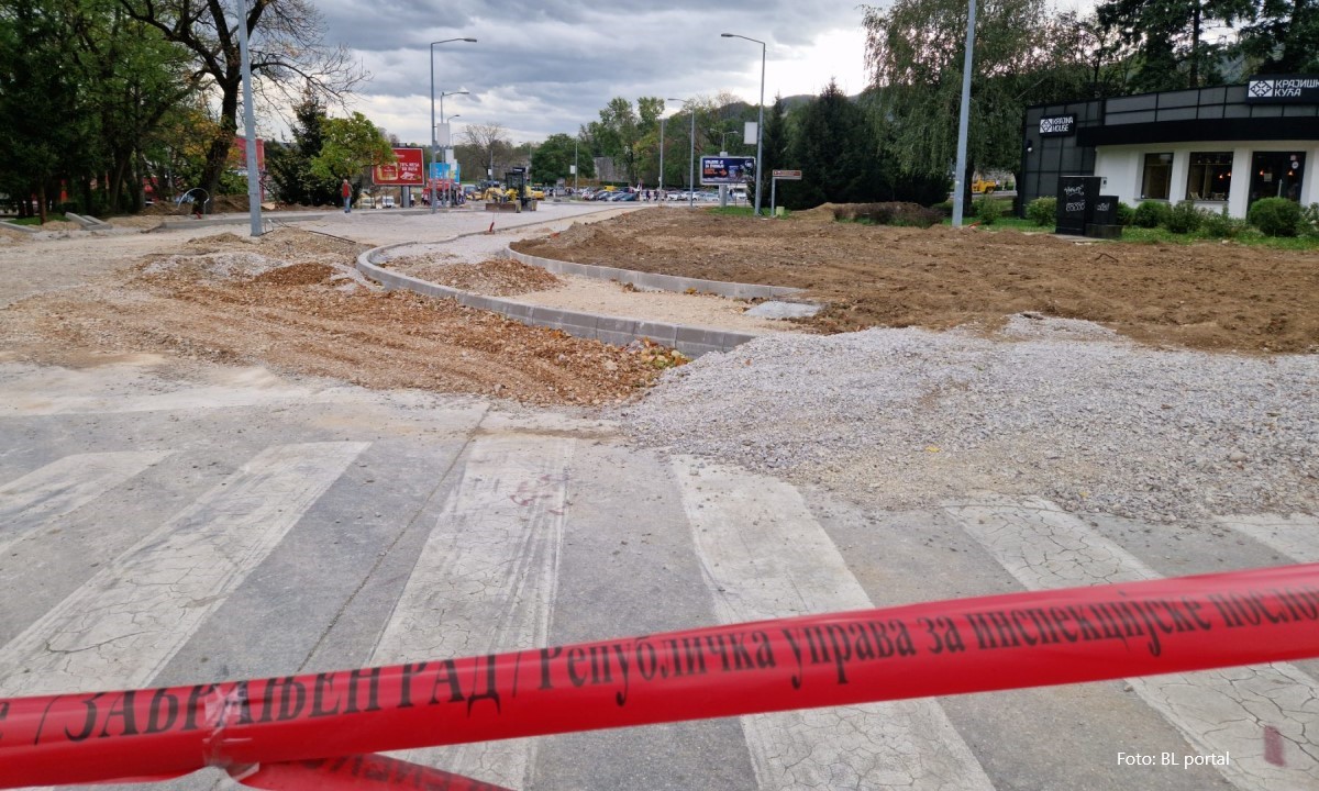 31.10.2023. | 11:31Osim nekoliko parkiranih mašina, na gradilištu novog kružnog toka kod Ekvatora, u centru Banjaluke, danas nema radnika, a crvena traka koju je postavila republička inspekcija nakon što je zaustavila r…