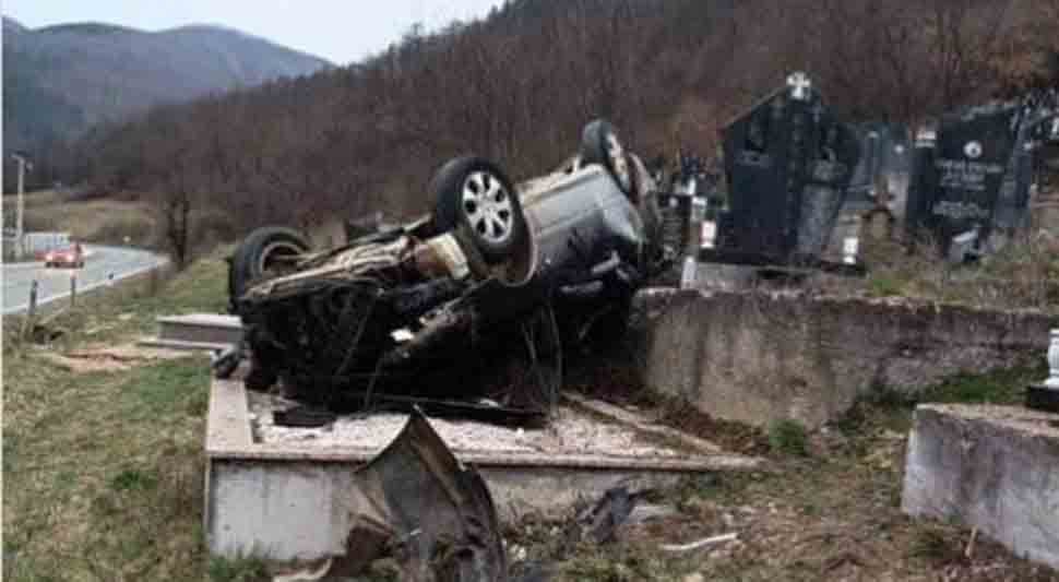 Nevjerovatna saobraćajna nezgoda: Autom uletio na seosko groblje FOTO