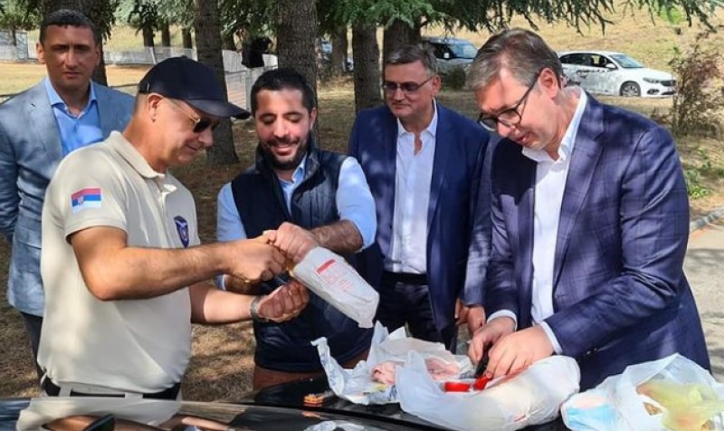 Vučić doručkovao na haubi auta: Pola kile hljeba, majoneza, mortadela i paradajz