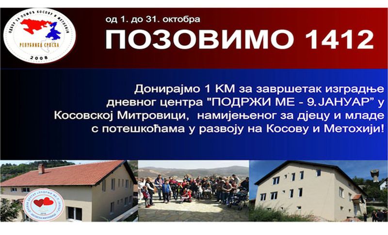 Humanitarni broj 1412 za pomoć u izgradnji Dnevnog centra na Kosmetu