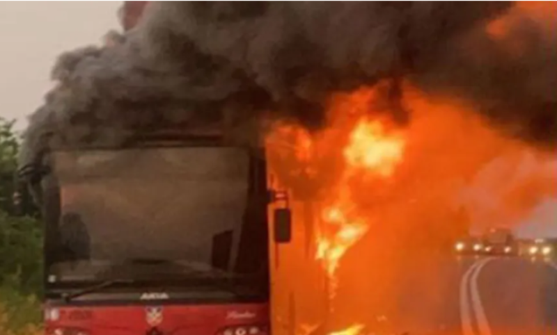 Vatra “progutala” autobus! Od vozila ostala gola metalna konstrukcija VIDEO/FOTO