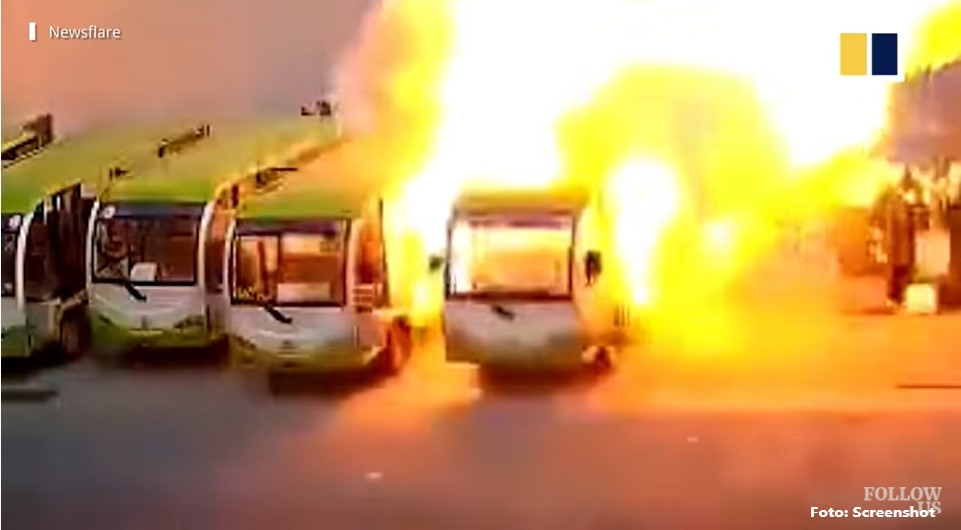 Na sreću u njima nije bilo nikoga: Požar “pokosio” električne autobuse VIDEO