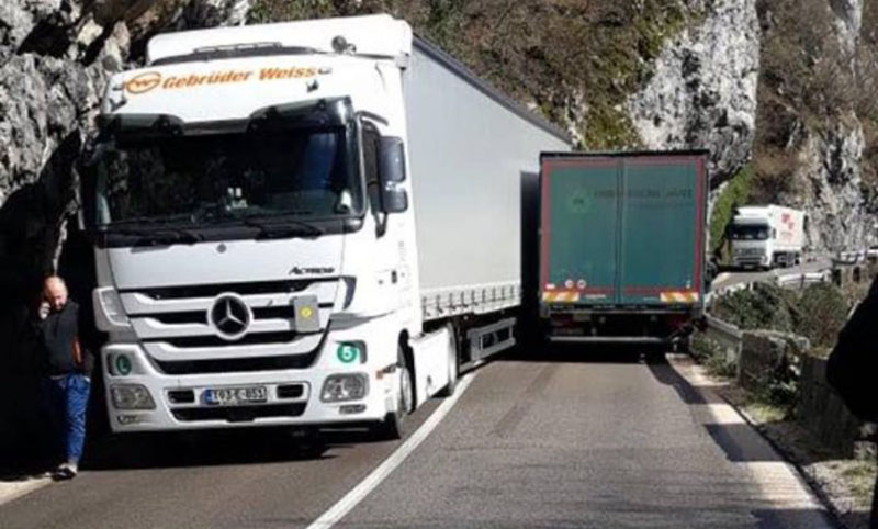 Neobična nesreća na putu Banjaluka – Jajce: Dva kamiona se zaglavila u mjestu Tijesno