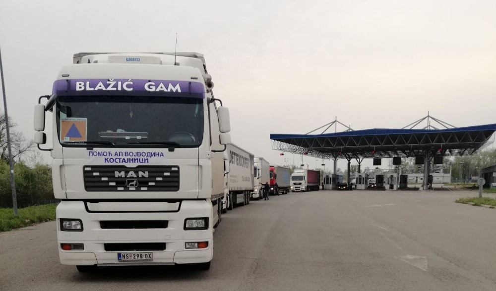 26.04.2021. | 18:49Šest kamiona sa građevinskim materijalom koji je AP Vojvodina donirala za opštinu Kostajnica, prešli su iz Srbije u Republiku Srpsku na graničnom prelazu Rača.