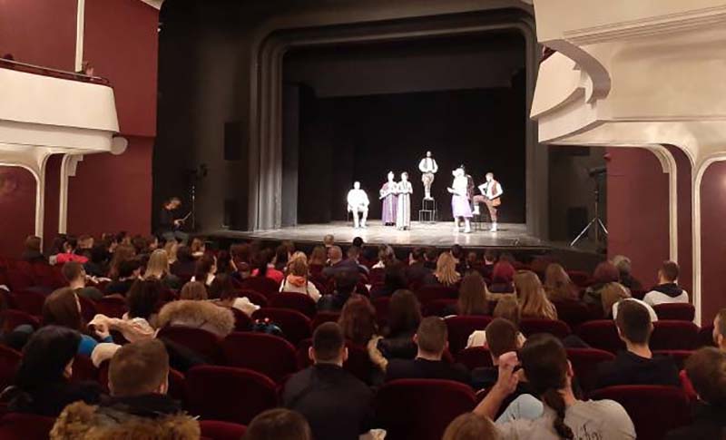 29.11.2021. | 13:28Predstavom “Serbus Europeikus” u izvođenju studenata Akademije umjetnosti u Banjaluci započeo je revijalni dio 4. Festivala studentskih pozorišta “Kestenburg 2021”.