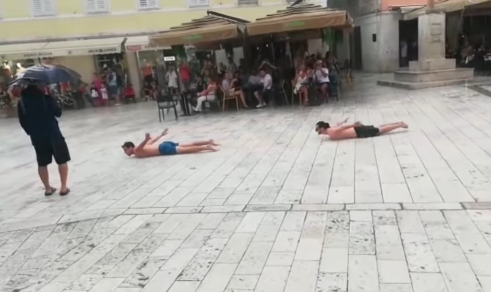 Loše vrijeme im nije pokvarilo zabavu: Tri momka se bacala na pod i klizala po kiši VIDEO