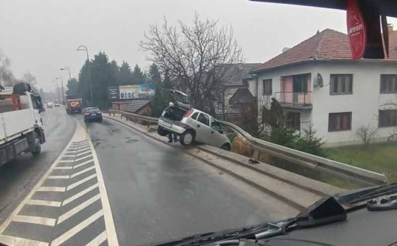 Oprez! Vozač “opela” izgubio kontrolu na klizavom kolovozu i zabio se u zaštitnu bankinu