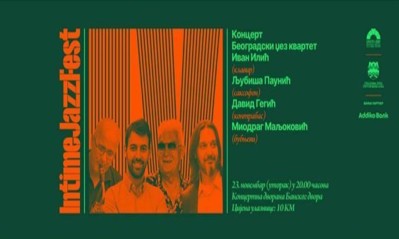 22.11.2021. | 13:26Koncertom Beogradskog džez kvarteta – Ivan Ilić (klavir) – Ljubiša Paunić (saksofon) – David Gegić (kontrabas) – Miodrag Maljković (bubnjevi) sutra uveče u 20.00 časova biće…