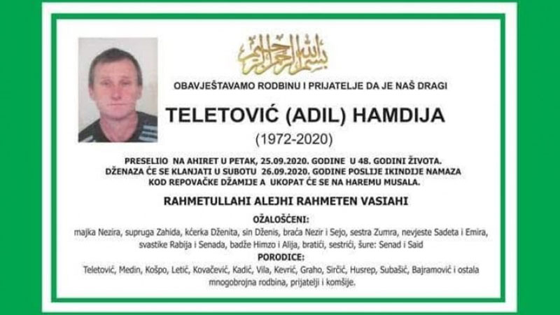 26.09.2020. | 12:11Dženaza Hamdiji Teletoviću koji je juče stradao od udara groma u Čelebićima kod Konjica, biće obavljena danas na groblju Musala.