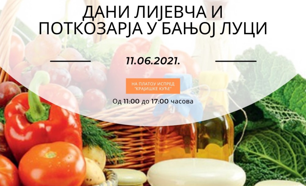11.06.2021. | 11:39U okviru manifestacije „Dani Lijevča i Potkozarja u Banjaluci“, poljoprivredna gazdinstva sa ovih područja predstavljaju svoje proizvode u petak 11. juna na platou ispred Krajiške kuće, saopšteno je i…
