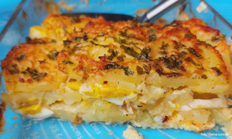 28.05.2021. | 07:15Sastojci: 5 većih krompira glavica crnog luka 100 ml ulja kašika suvog začina so, biber po ukusu kašika peršunovog lista 200 ml pavlake 100 g tvrdog sira 100 ml vode Priprema: Zagrijati ulje pa mu dod…