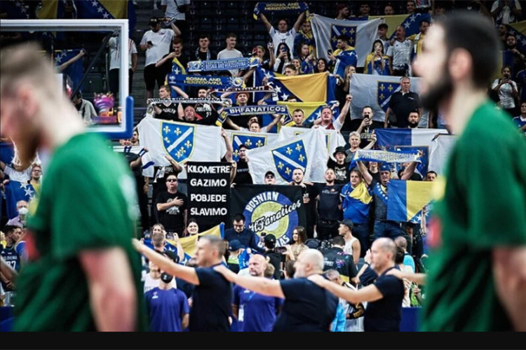 07.09.2022. | 16:21U Kelnu se igran meč između Litvanije i BiH u okviru grupe faze Evrobasketa na kojem su ponovo navijači sa zastavama RBiH sa liljanima iako su FIBA i Košarkaški savez Njemačke zabranili njihov unos u …