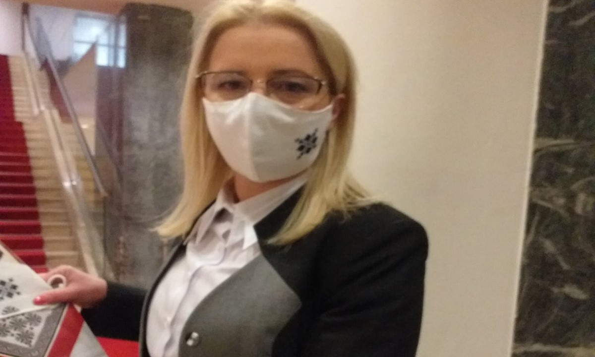 11.01.2021. | 12:59Šef Kluba poslanika u Predstavničkom domu Parlamentarne skupštine BiH Snježana Novaković Bursać podijelila je ženama poslanicima u Predstavničkom domu zaštitne maske na kojima su motivi zmijanjskog ve…
