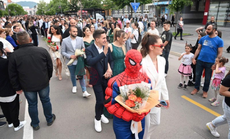 28.05.2023. | 20:38Žarko sunce ispratilo je maturante Tehnološke škole koji su večeras krasili Trg Krajine gdje su se okupili kako bi se fotografisali sa roditeljima, drugarima i profesorima. Sretni što kiša ne remeti n…