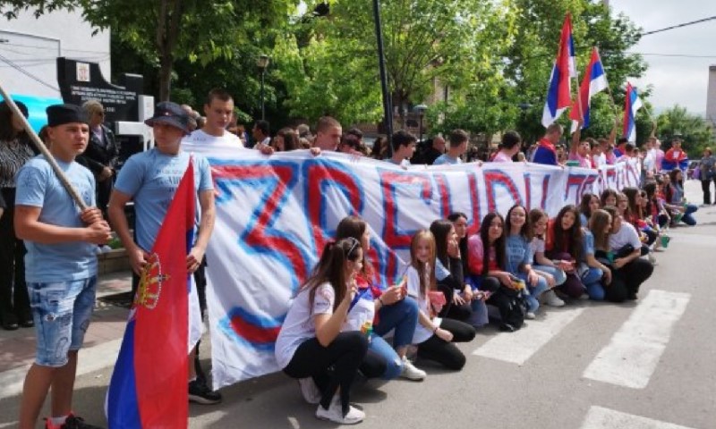 05.06.2023. | 10:51Maturanti OŠ “Vuk Кaradzić” iz Zvečana obilježavaju posljednji dan škole. Oni su s velikim transparentom “Zvečan je vječan” došli pred opštinu. U blizini su bodljikava žica i v…