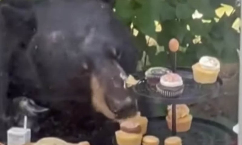 Iznenadni gost: Medvjed upao na rođendansku zabavu i pojeo kolačiće VIDEO