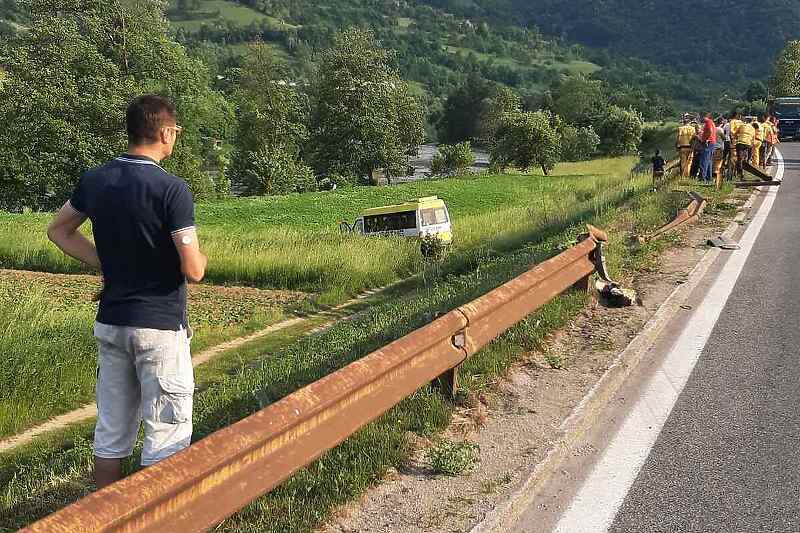 27.05.2021. | 19:05Na magistralnom putu M-17 u Janjićima kod Zenice odvijala se prava drama, kada je došlo do saobraćajne nesreće usljed koje je mini bus sletio s puta.