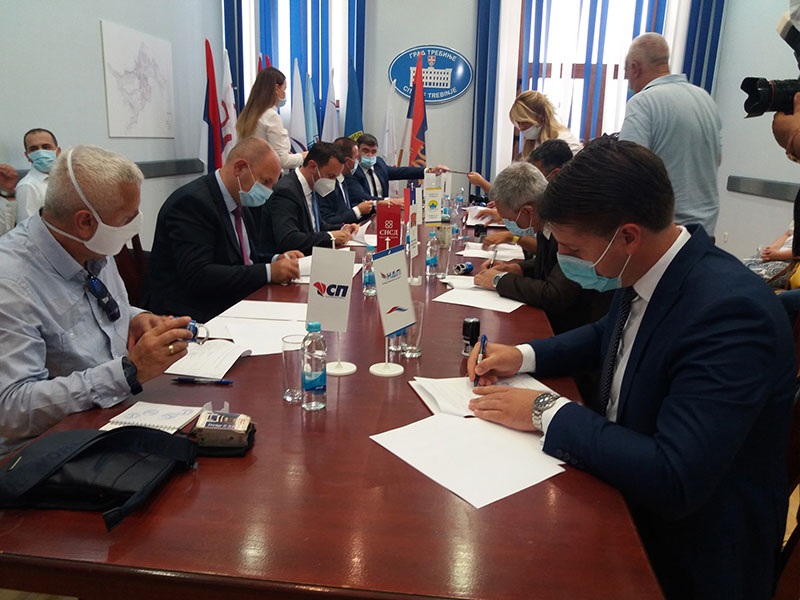 01.08.2020. | 16:24Devet političkih stranaka danas je u Trebinju potpisalo koalicioni sporazum o podršci Mirku Ćuriću, kandidatu za gradonačelnika na predstojećim lokalnim izborima.