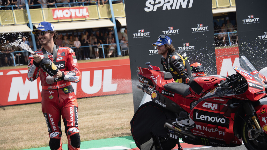 25.06.2023. | 19:25Vozač Dukatija Frančesko Banjaja pobijedio je na Velikoj nagradi Holandije koja je u okviru Moto Dži-Pi šampionata vožena na stazi u Asenu.