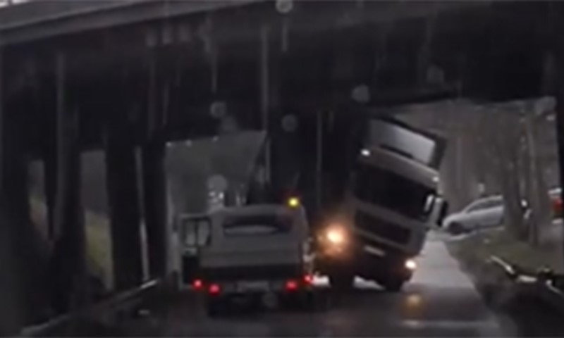 Kad vozač “udari” slabu procjenu: Kamion zapeo ispod nadvožnjaka u BiH FOTO / VIDEO