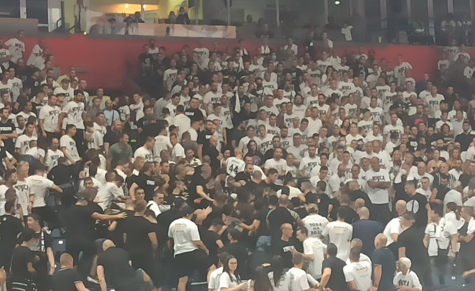 Opšta makljaža! Tuča navijača Partizana na meču crno-bijelih i Efesa u Areni VIDEO