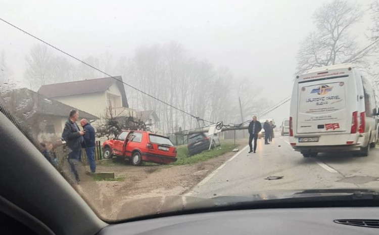 19.11.2022. | 08:27U slijetanju BMW-a u kojem su bila dvojica mladića, na sreću nije bilo teže povrijeđenih, a od siline udara automobil je prepolovio betonski stub i sletio u kanal pored puta.