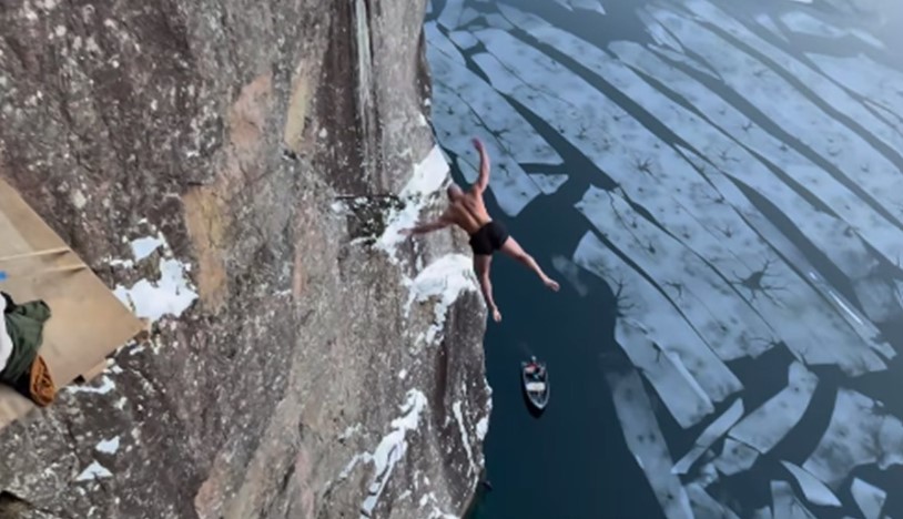 07.12.2023. | 09:16Norvežanin Ken Stors upisao se u Ginisovu knjigu rekorda zahvaljujući vrlo opasnom podvigu. Ken je izveo “smrtonosan skok”, tako što je skočio u zaleđeno more sa visine od 40,5 metara. &nb…